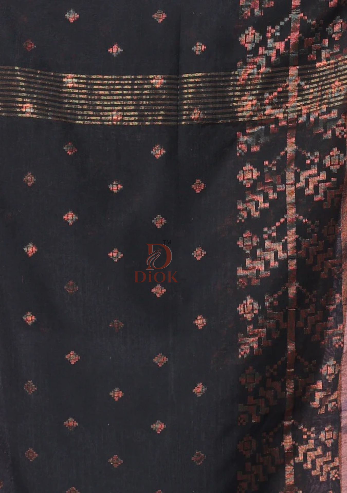 Black Handloom Cotton Saree with Golden Zari Motifs
