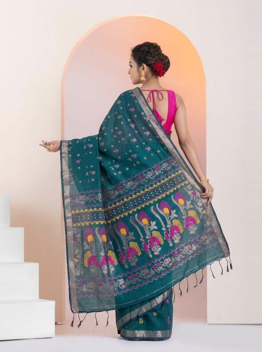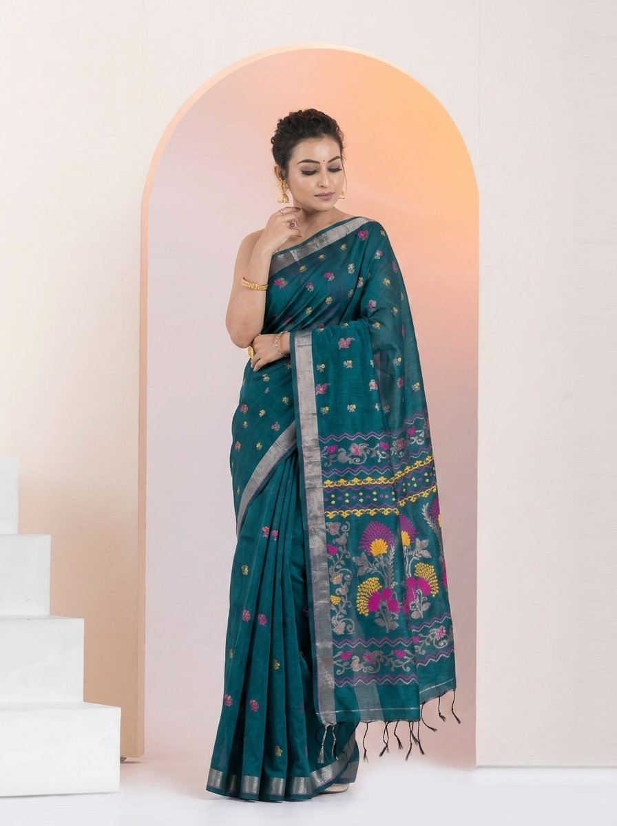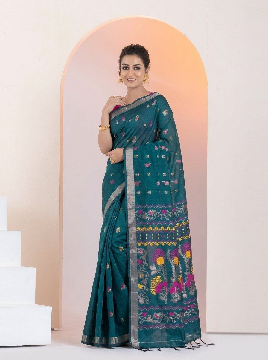 Finished with elegant tassels, this saree is perfect for festive occasions, cultural gatherings, and sophisticated everyday wear, offering a perfect blend of tradition and contemporary style.