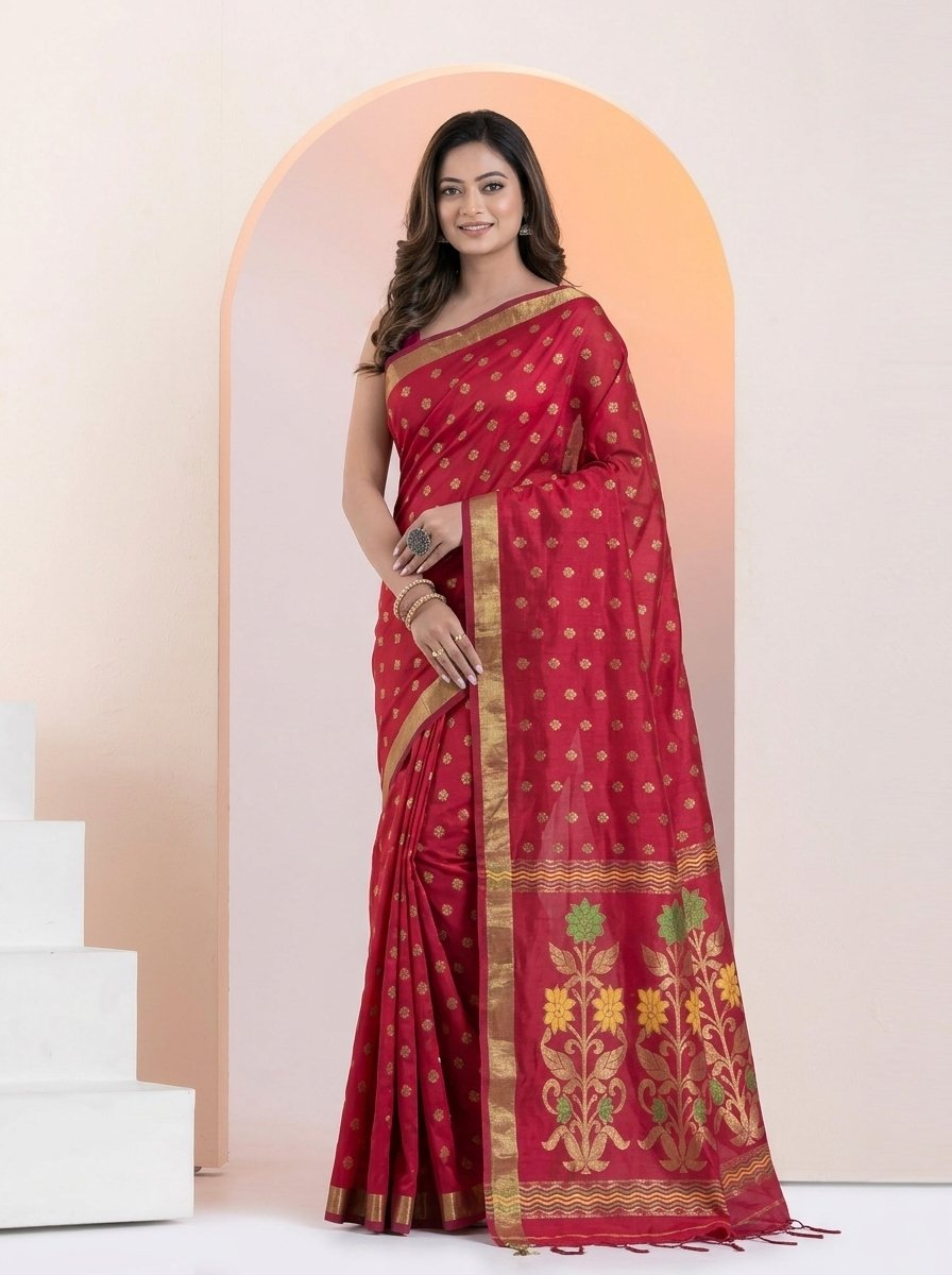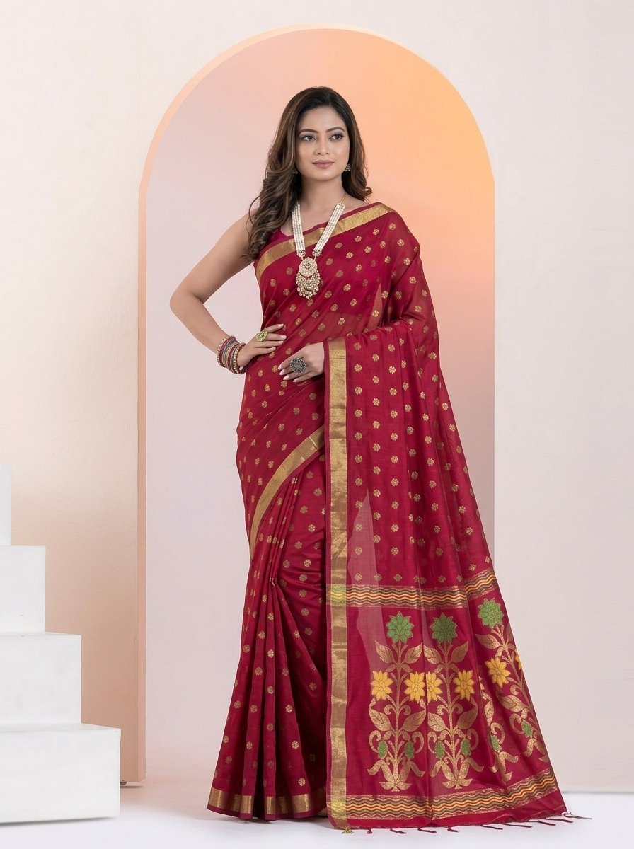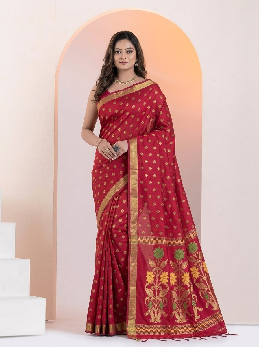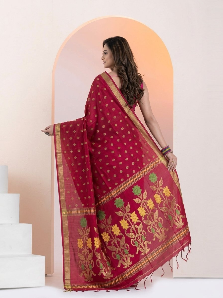 Finished with elegant tassels, this saree is perfect for festive occasions, cultural gatherings, and sophisticated everyday wear, offering a perfect blend of tradition and contemporary style.