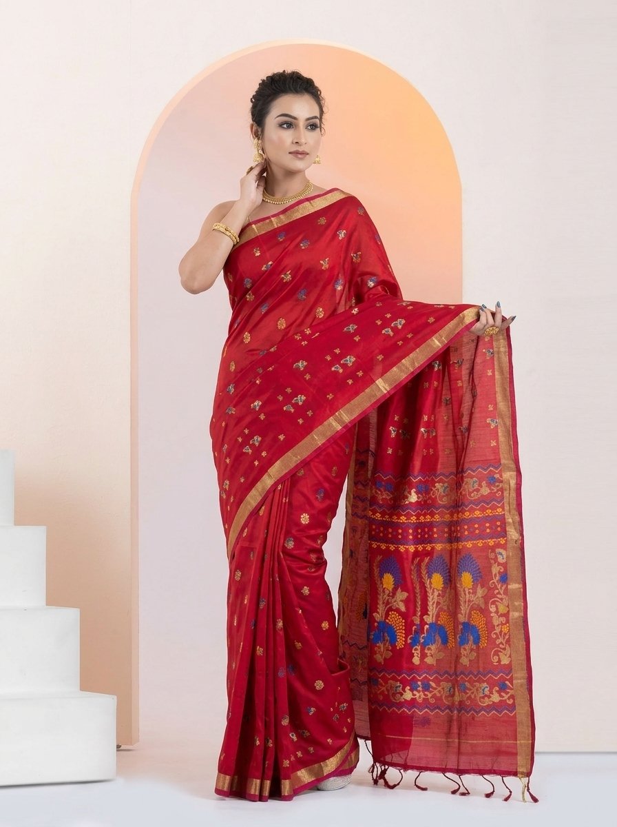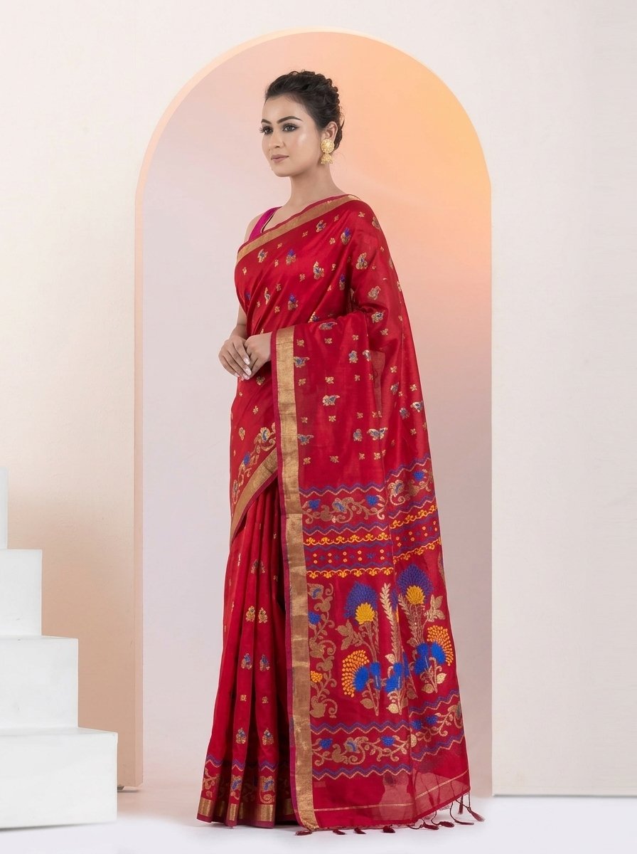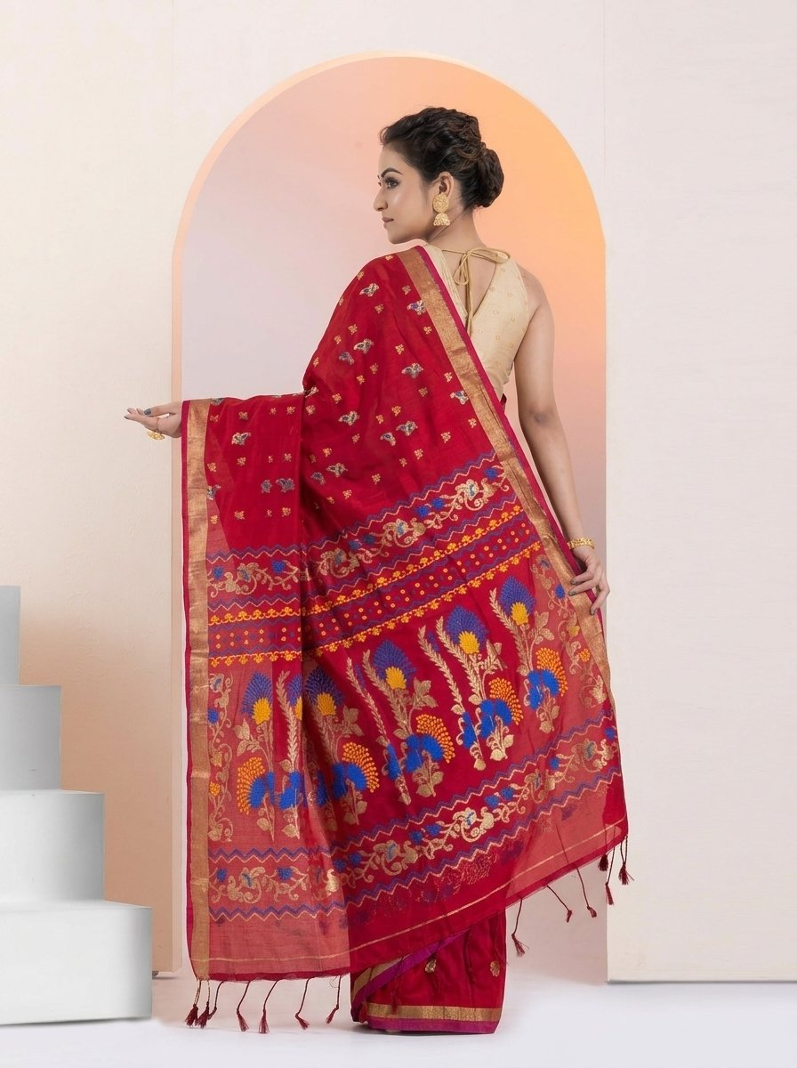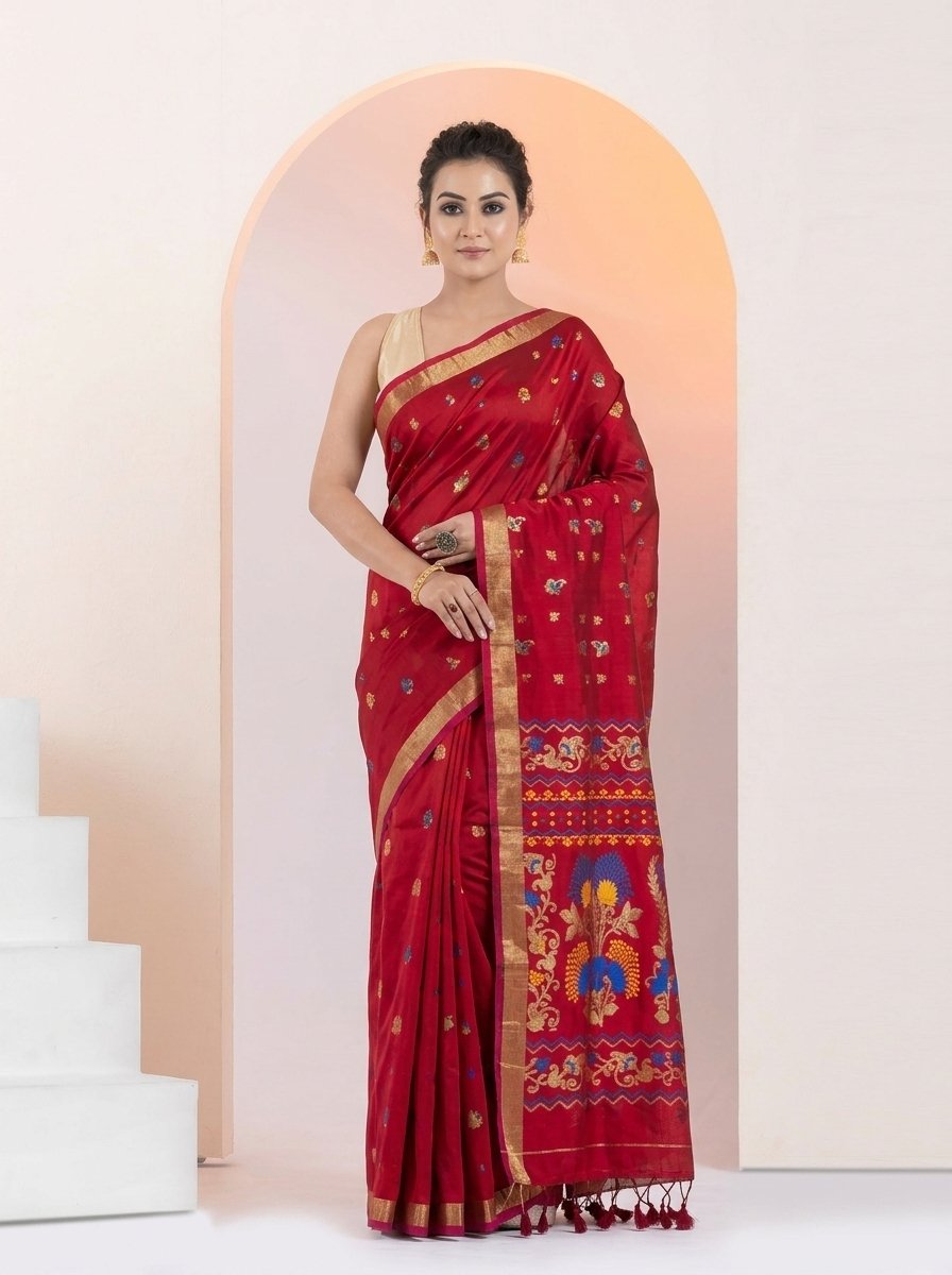 Finished with elegant tassels, this saree is perfect for festive occasions, cultural gatherings, and sophisticated everyday wear, offering a perfect blend of tradition and contemporary style.