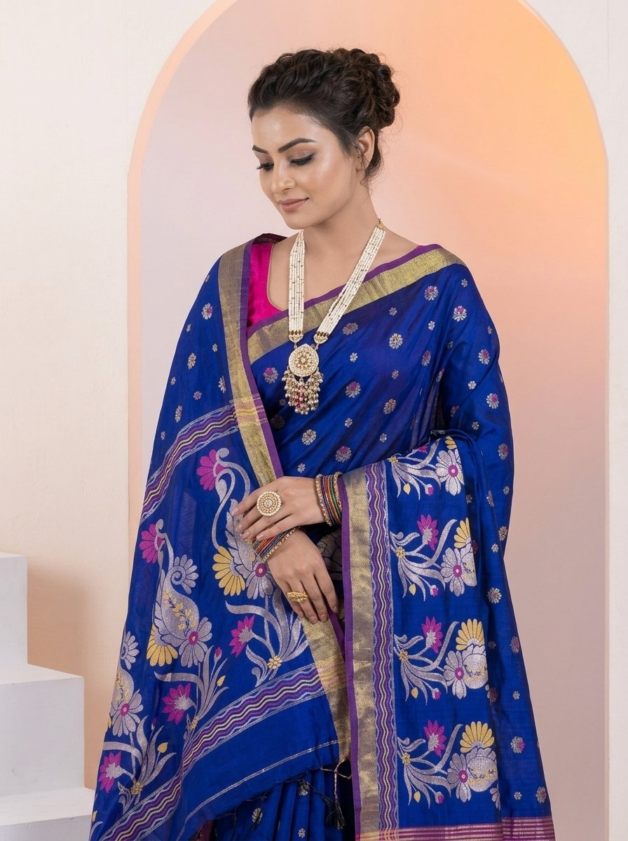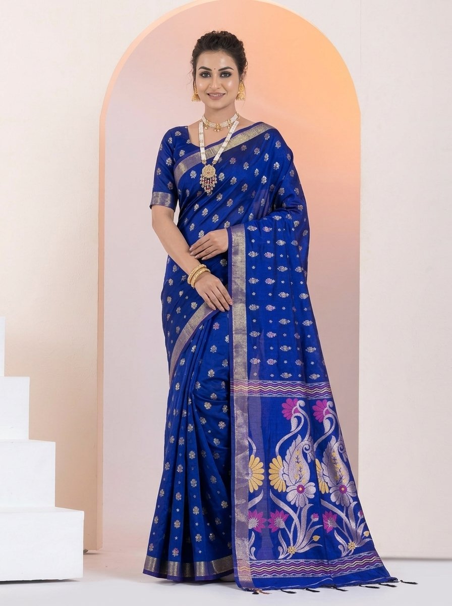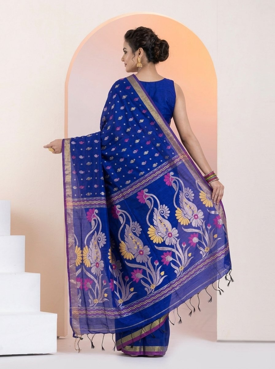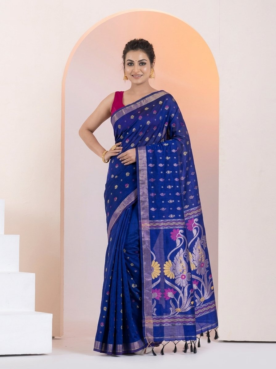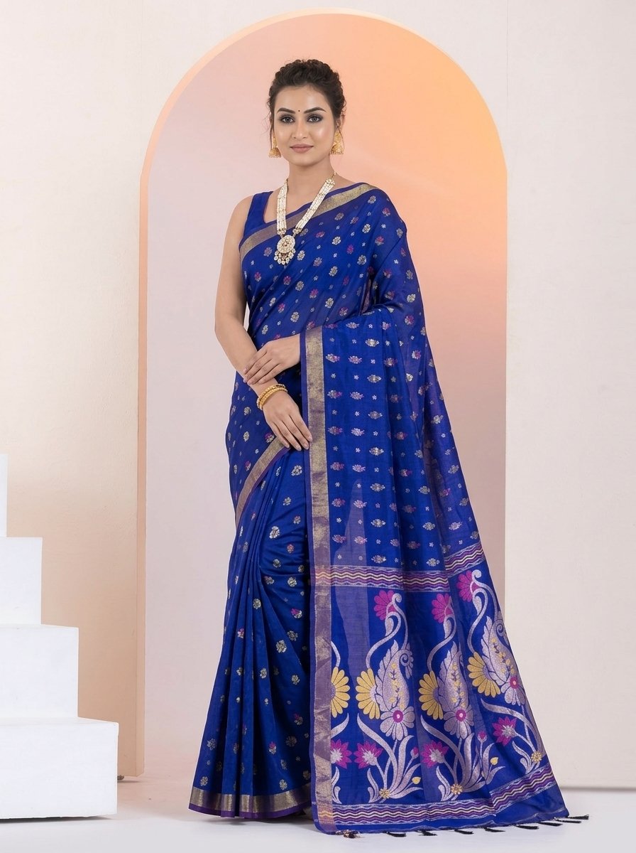 Finished with elegant tassels, this saree is perfect for festive occasions, cultural gatherings, and sophisticated everyday wear, offering a perfect blend of tradition and contemporary style.