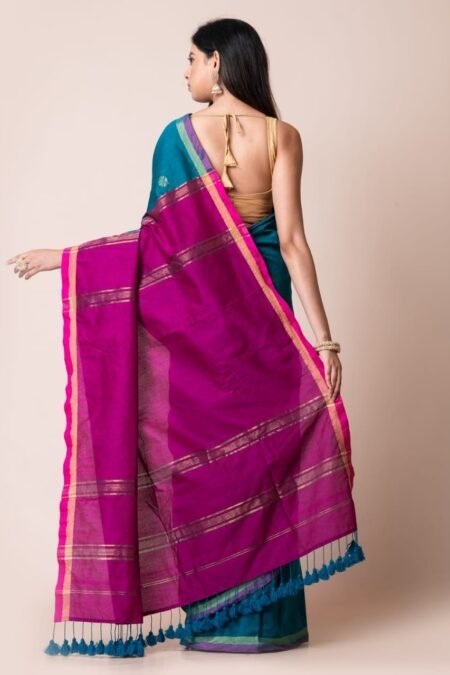 This Muslin Jamdani saree is a masterpiece of traditional weaving, blending ethereal lightness with intricate artistry. Known for its sheer, breathable texture, this saree offers a graceful drape that feels almost weightless against the skin.