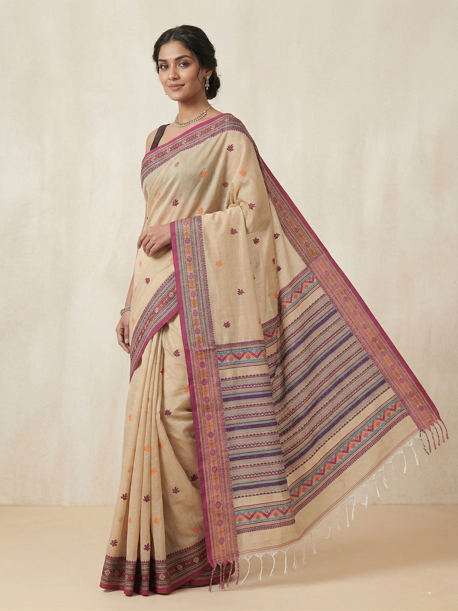 Celebrate the beauty of handloom craftsmanship with this elegant cotton saree. Designed for comfort and styled for impact, it features fine weaving details and a smooth texture that enhances its luxurious appeal. A perfect blend of tradition and contemporary fashion for the modern wardrobe.
