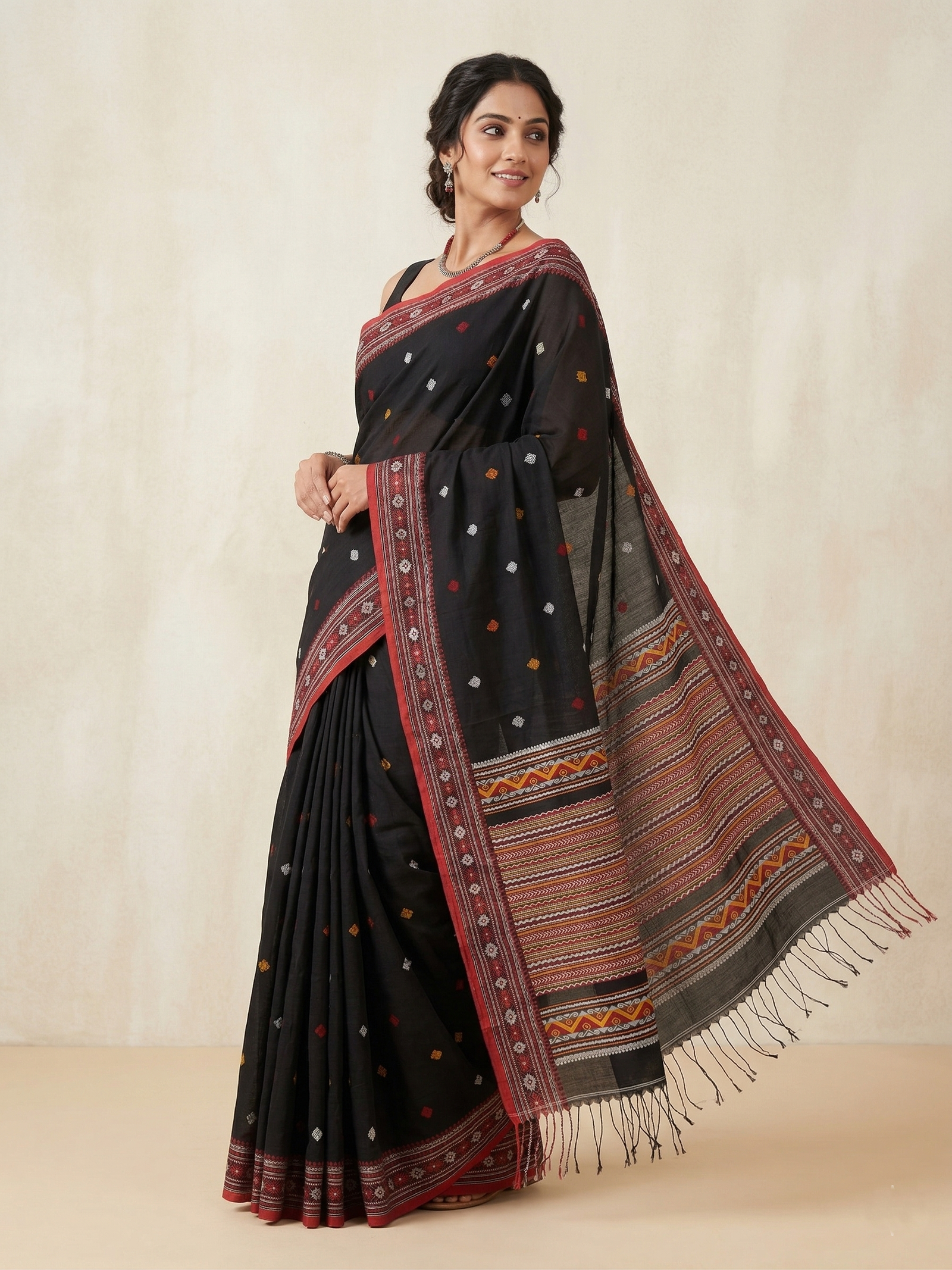 Celebrate the beauty of handloom craftsmanship with this elegant cotton saree. Designed for comfort and styled for impact, it features fine weaving details and a smooth texture that enhances its luxurious appeal. A perfect blend of tradition and contemporary fashion for the modern wardrobe.