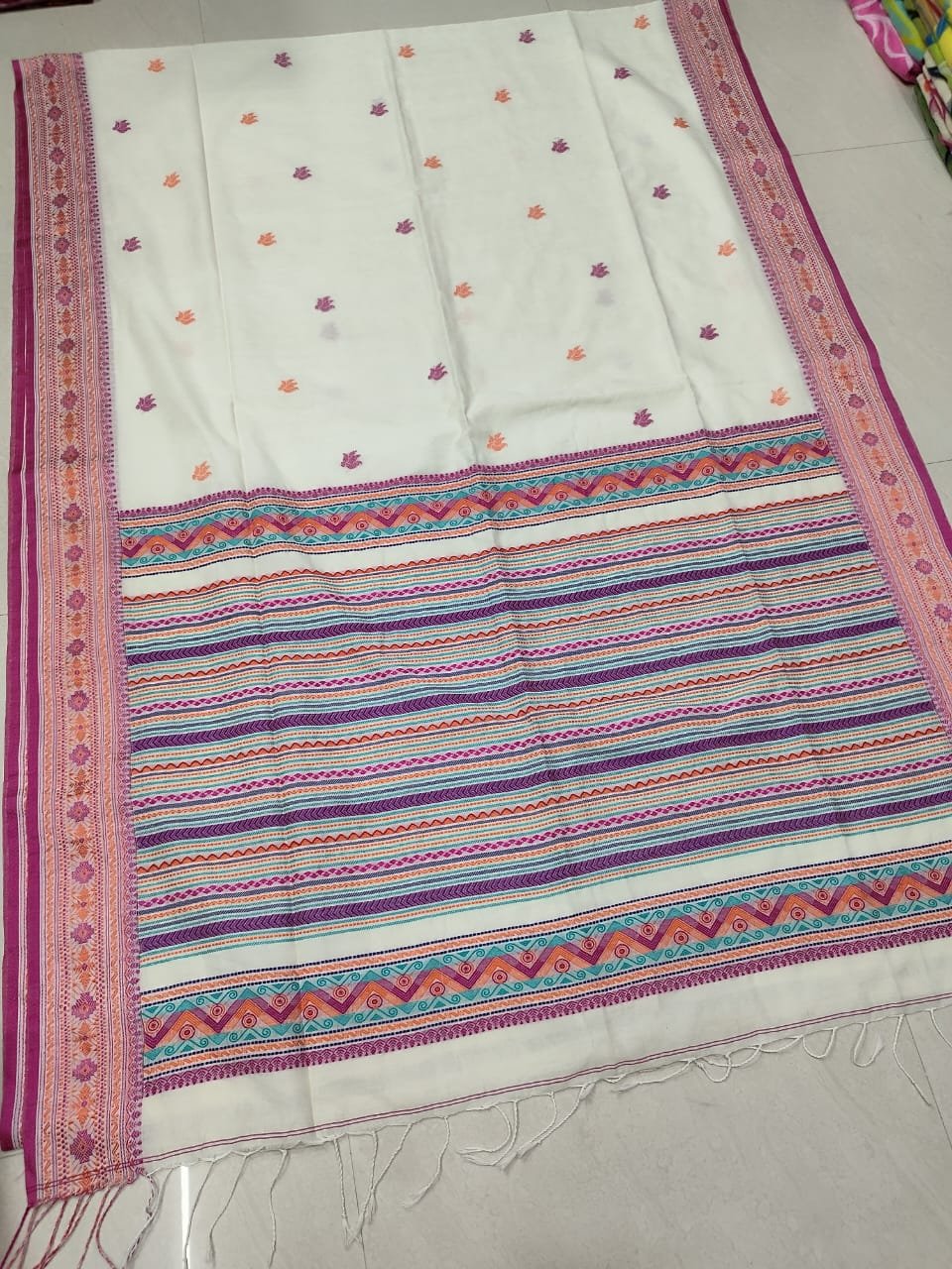 Celebrate the beauty of handloom craftsmanship with this elegant cotton saree. Designed for comfort and styled for impact, it features fine weaving details and a smooth texture that enhances its luxurious appeal. A perfect blend of tradition and contemporary fashion for the modern wardrobe.
