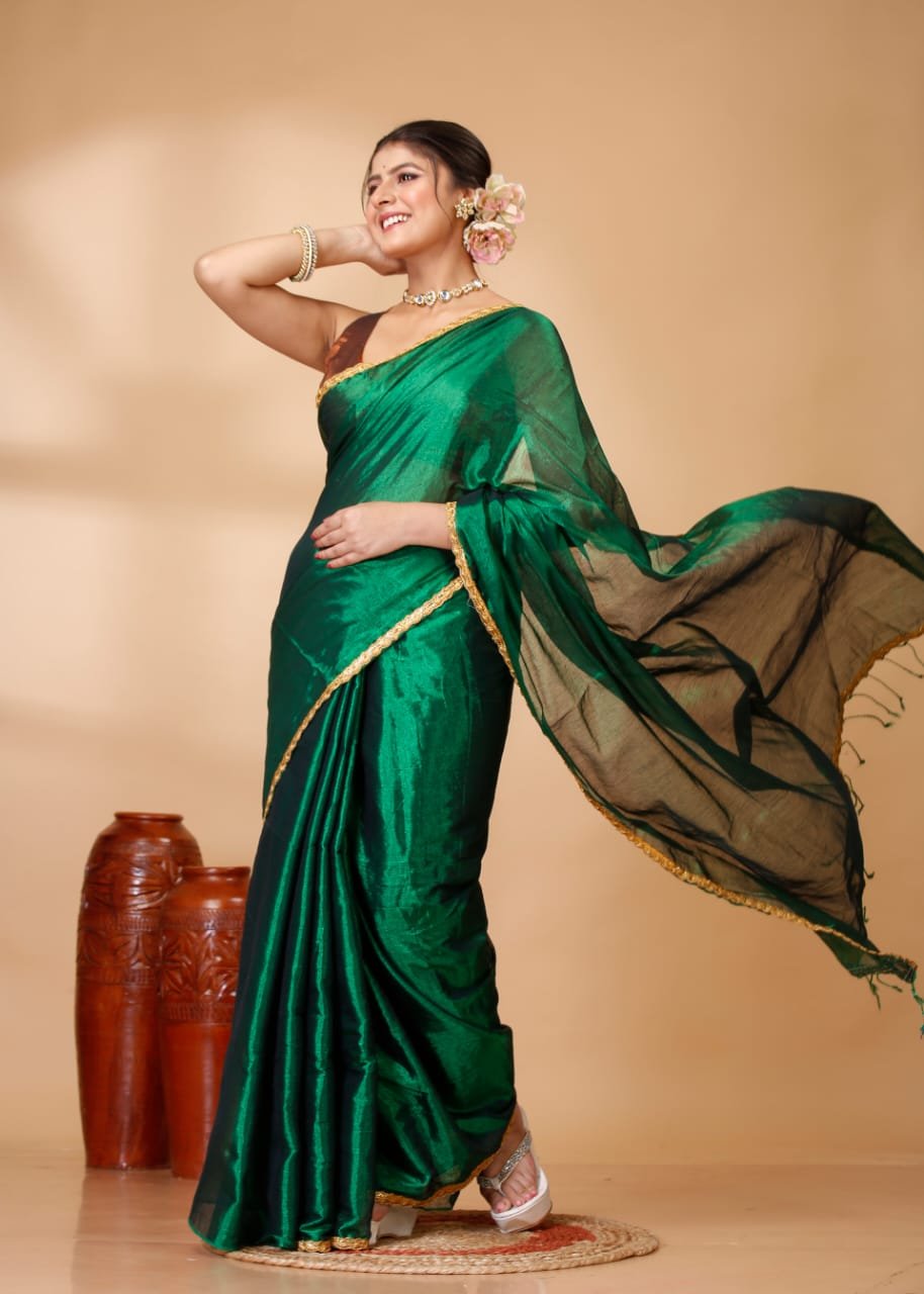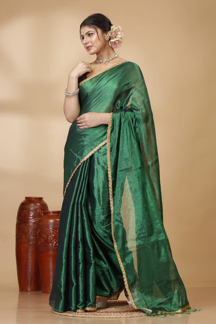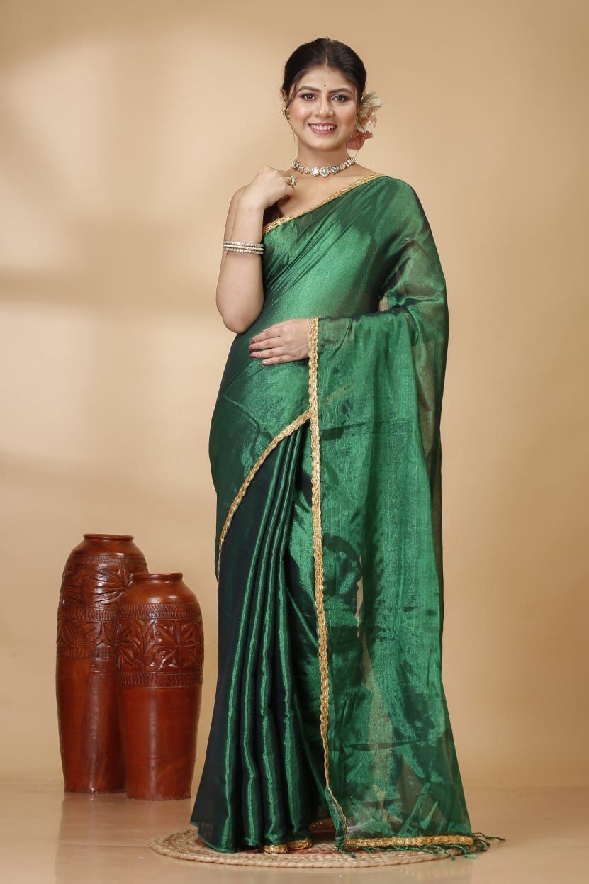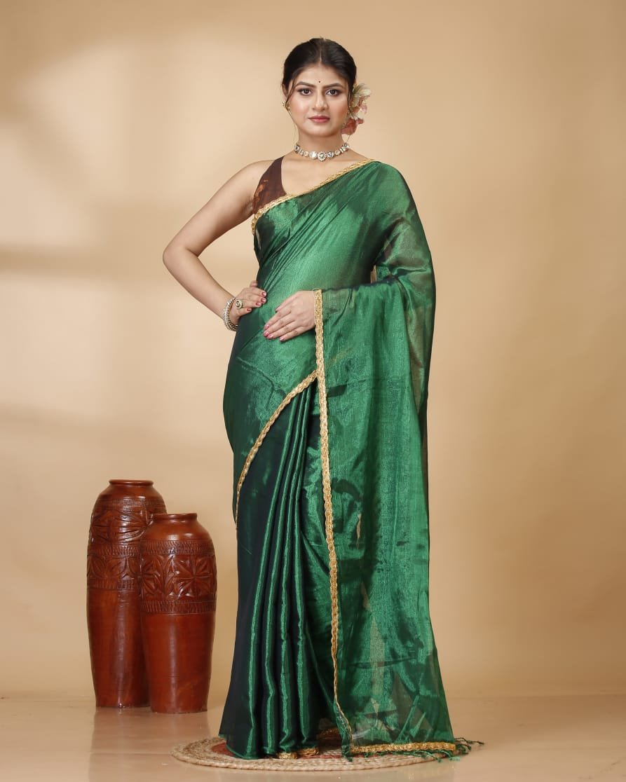 Embrace timeless elegance with this Premium Raga Tissue Saree, a perfect blend of traditional craftsmanship and contemporary style. Crafted from high-quality tissue fabric, this saree offers a sophisticated metallic luster and a lightweight, fluid drape that ensures comfort throughout the day.