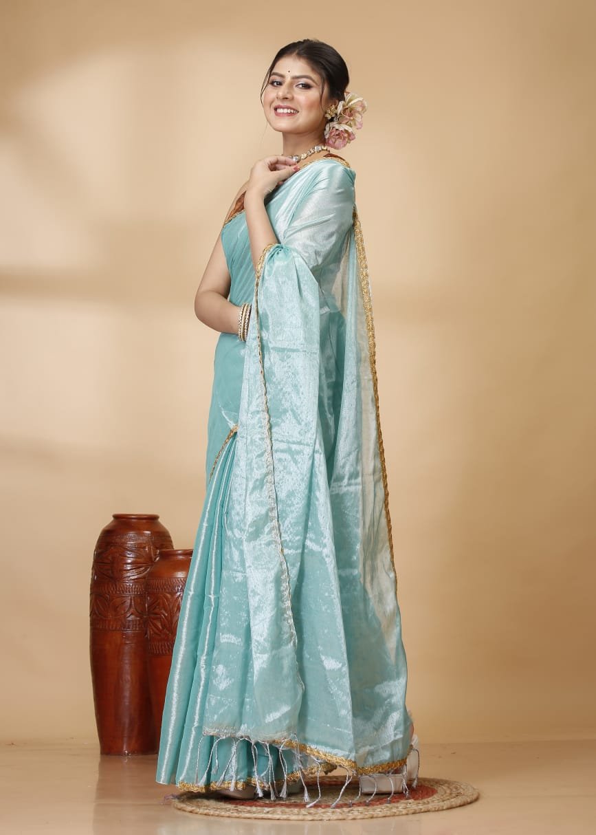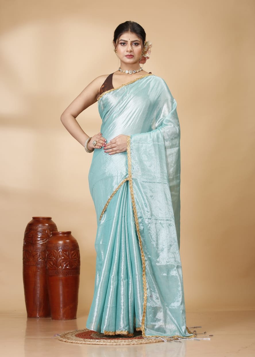 Embrace timeless elegance with this Premium Raga Tissue Saree, a perfect blend of traditional craftsmanship and contemporary style. Crafted from high-quality tissue fabric, this saree offers a sophisticated metallic luster and a lightweight, fluid drape that ensures comfort throughout the day.