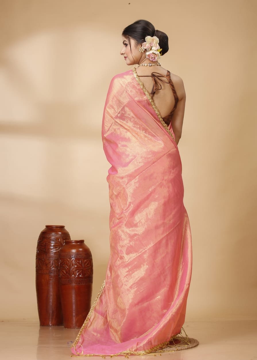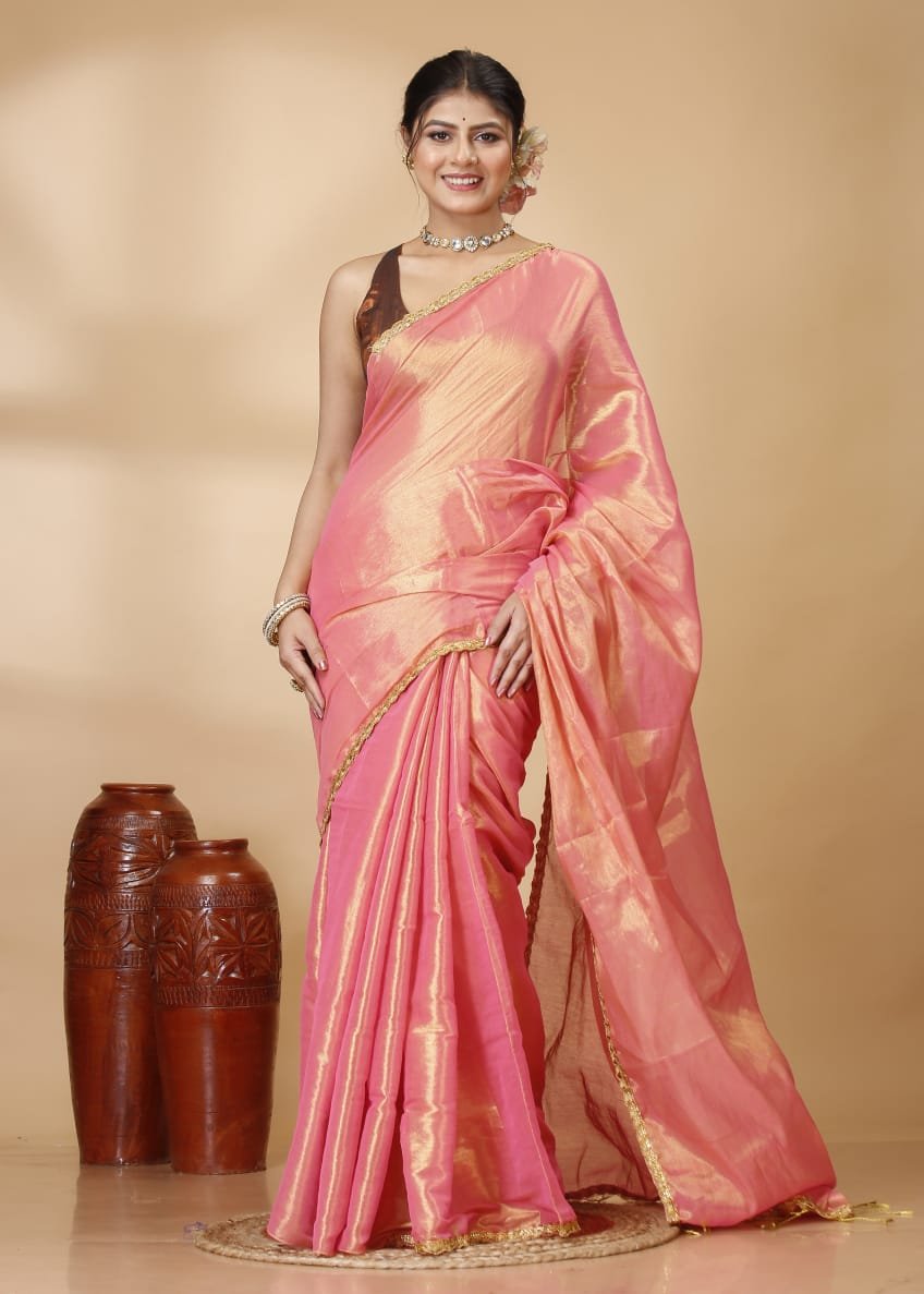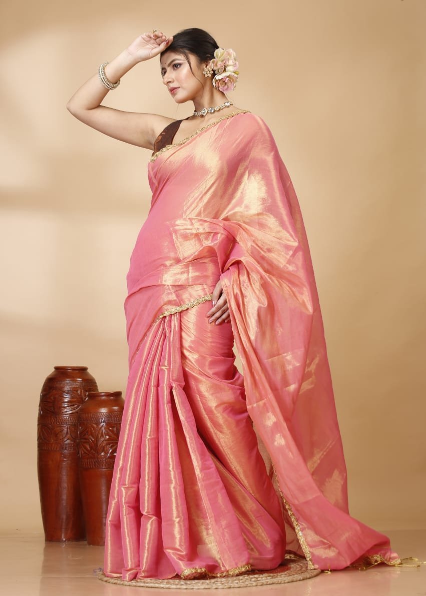 Embrace timeless elegance with this Premium Raga Tissue Saree, a perfect blend of traditional craftsmanship and contemporary style. Crafted from high-quality tissue fabric, this saree offers a sophisticated metallic luster and a lightweight, fluid drape that ensures comfort throughout the day.