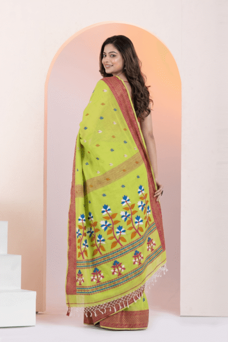 Experience refined elegance with this beautifully crafted handloom linen saree, designed for modern women who appreciate timeless style. Woven with precision, the breathable linen fabric offers a lightweight feel, ensuring all-day comfort while maintaining a graceful and flattering drape.